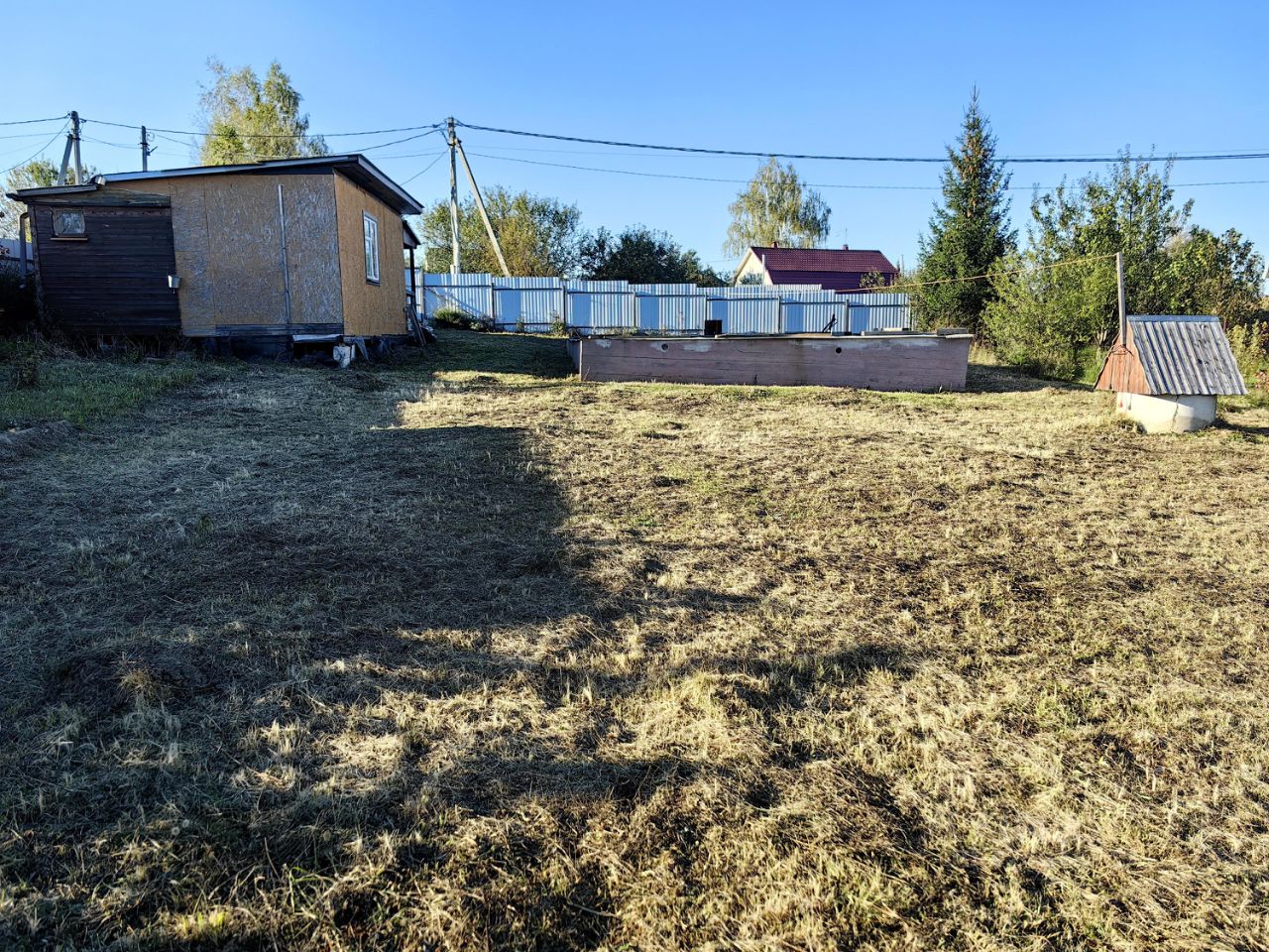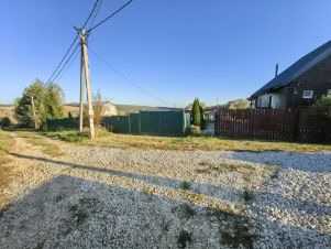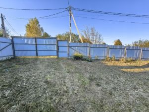 Участок с красивым панорамным видом на округу, посажены сосны и немного кустарников, забор с трех сторон металлопрофиль, с одной стороны сетка-рабица, въездные распашные ворота и отдельная калитка.