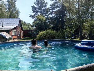 Участок ровный, выходит на две стороны. Граничит с лесом. По бокам соседи. Вода не скапливается. Снег зимой чистят. На участке 2 полноценных двухэтажный дома, один гостевой домик, русская баня, большая беседка с кухней, каркасный бассейн. Вода холодная/горячая, новая электрическая проводка. Дома разделены на два счётчика. Есть возможность заключить прямой договор с Тулэнерго.