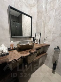 В ванной на первом этаже раковина из камня привезенного с Бали
