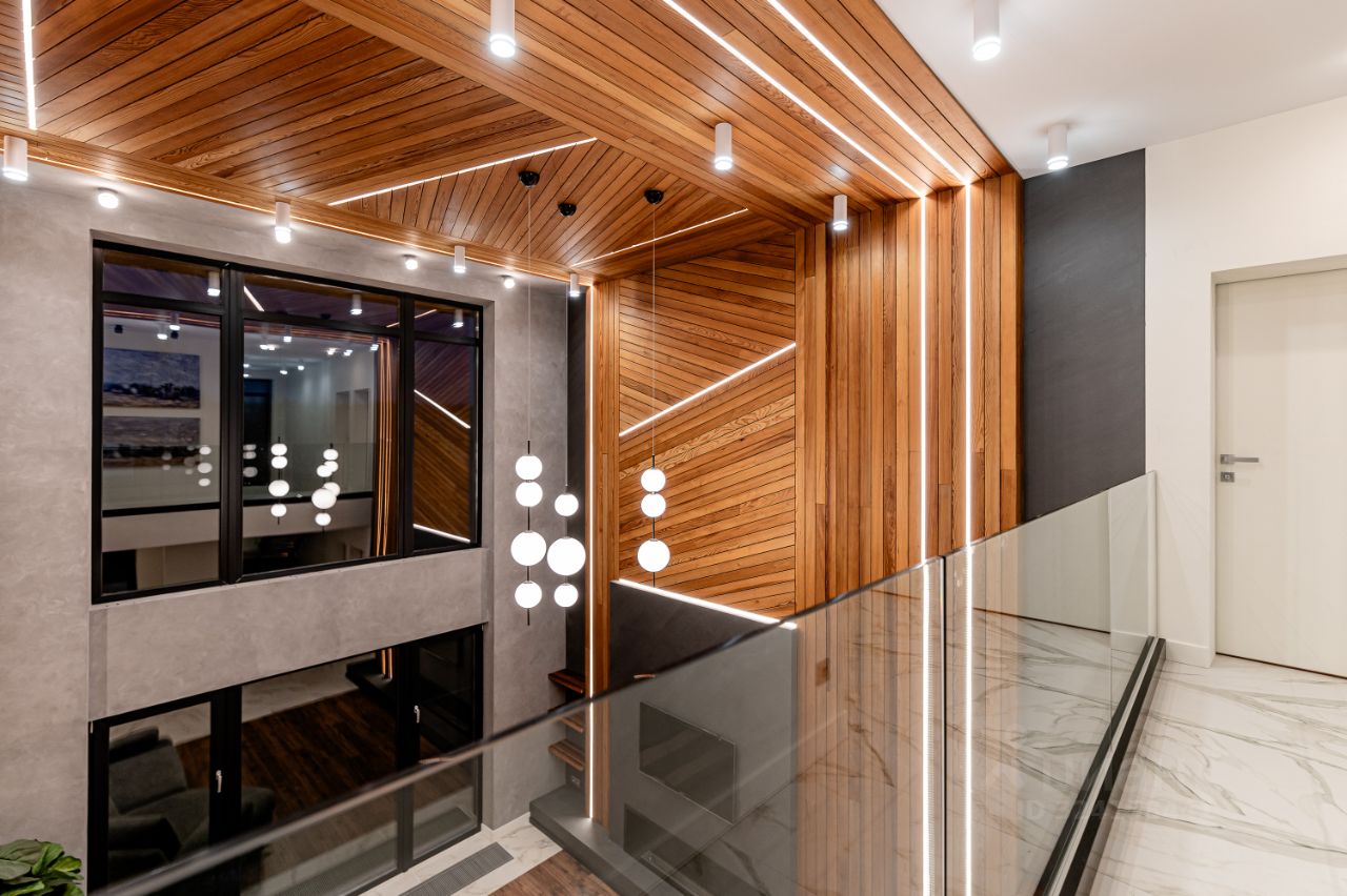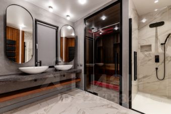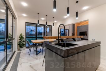 Дом в поселке бизнес класса Капитан Рождествено с богатой инфраструктурой с единым архитектурным стилем. Облагороженная прогулочная зона вдоль небольших озер с пляжами, сеть ресторанов, фитнес с бассейном, футбольное поле, теннисный корт, крытая спортивная арена, школа, детский сад, масса детских игровых площадок, мини зоопарки, зоны барбекю, мини маркет, аптека, беговая дорожка, православный Храм — все это на единой охраняемой территории в шаговой доступности. Дом выполнен по индивидуальному проекту с внешним фасадом в стиле Райта, гостиной со вторым светом и панорамными окнами. Максимально удобное расположения участка относительно инфраструктуры (3-5 минут до ресторана, фитнеса, футбольного поля, магазина, детских площадок, 10 минут до пляжа) при этом находится в уютном и тихом месте с видом на поле с растущими деревьями. Дом 380 (площадь 222 м2), участок 17 соток, коробка построена в 2021 году, окончание внутренней отделки конец 2024. 4 спальни, гостиная со вторым светом, 2 с\у с сауной, гараж, веранда. Коммуникации газовое отопление, электричество 15кВт, централизованное водоснабжение и канализация. Дизайн интерьера выполнен в едином стиле с применением высоких требований к внешнему виду и использованием качественных материалов. Сочетание дерева (термообработанное) с современными отделочными материалами и искусственным освещением определило современный ненавязчивый дизайн. Расположение дома относительно участка визуально дает максимальный простор перед домом, не разбивая участок на небольшие части. На участке посажен газон, выполнены подъезд к дому, автоматические раздвижные ворота, дренажная система отвода дождевой воды. Фасад дома выполнен из термообработанного планкена с клинкерной плиткой (Stroeher). Фасадное скрытое освещение. Непосредственное примыкание газона к фасаду дома для максимального эффекта визуализации с использованием дренажных мембран и подземной капельной системы полива. Отопление дома сделано на автоматизированной системе управления Vaillant, все полы, в том числе второго этажа, подогреваемые (водяные), внутрипольные конвекторы, отапливаемый гараж, автоматизированная система очистки воды. Возможность регулировать температуру отдельно в каждой комнате. Электрооборудование спроектировано и выполнено с применением высококачественного оборудования ABB и Arlight (слаботочное освещение). Все стеклянное ограждение выполнено из закаленного высокопрочного стекла.