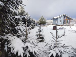 Посажены сосны, ели. По периметру высажены 150 туй. Красивый зеленый забор, который создает уют и приватность круглый год. Стоимость таких насаждений только растет.