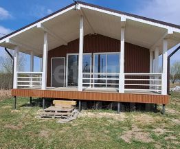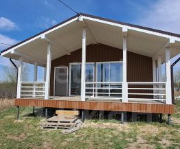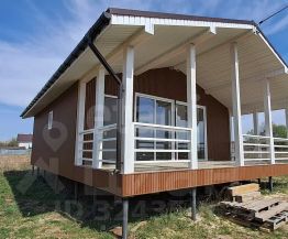 Крыша выполнена из качественного профнастила c21 толщиной 0,45 мм и оснащена водосточной системой. Пластиковые окна с двухкамерными стеклопакетами обеспечивают отличную тепло- и звукоизоляцию. Внутри дом обшит гипсокартоном на металлическом каркасе, что придаёт ему современный вид.