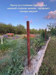 5. Залит ленточный фундамент со столбами под забор. Соседи монтируют профлист.