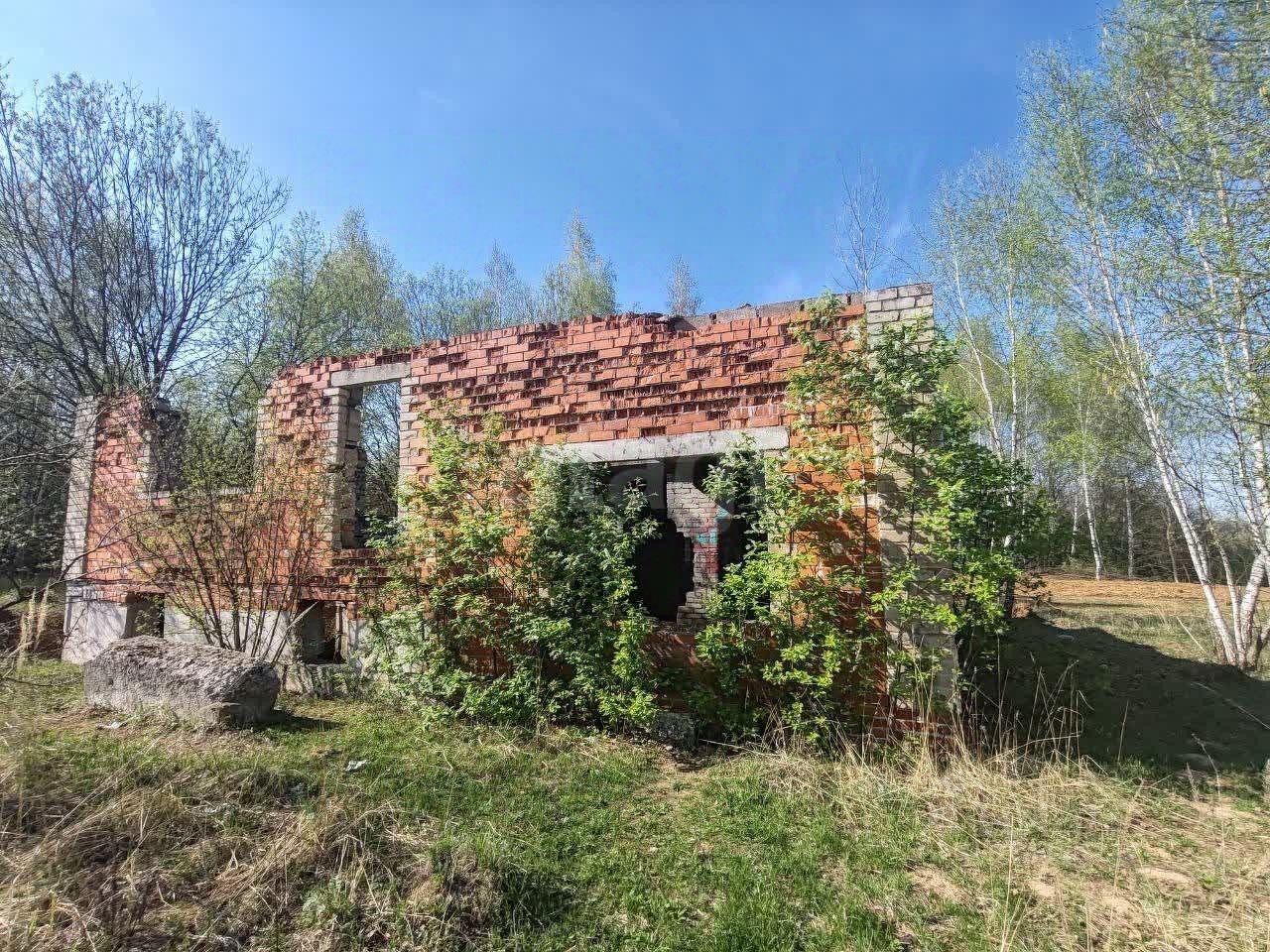 Подъезд к участкам хороший, последние 100 метров - грунтовка. На участке есть недостроенный кирпичный дом, который при желании можно восстановить.