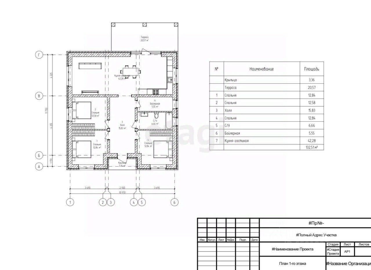 Kухня—гостинaя, 3 cпальных комнаты, бойлeрная, сан. узел, холл.