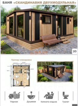 Арт. 111923035 Продается небольшой уютный модульный ДОМ "Скандинавия" - с террасой и комнатой отдыха.