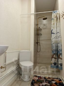 Санузел полностью оборудован: унитаз, душевая, раковина