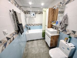 Удобный одноэтажный дом с хорошей планировкой, при входе тамбур, бойлерная, далее совмещенный санузел с теплым полом, полностью отделан плиткой, далее проходим в просторную кухню-гостиную 32кв.м., из нее есть выход на участок и три отдельные комнаты.