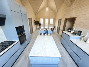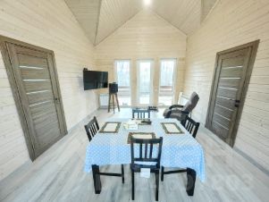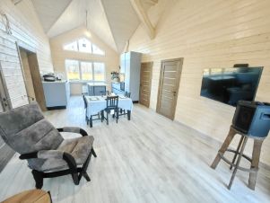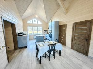 Современная новая кухня, приезжали по выходным, все в чистом опрятном виде, дом внутри в светлых тонах, в кухне-гостиной высокие потолки чувствуется простор и легкость!