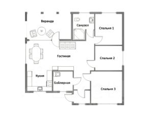 Площадь дома: 130 м2; кухня - 8.2 м2; 3 спальни - 13.5/11.2/11.2 м2; гостиная - 27 м2; кухня - 8.2 м2; душевая комната с с/у - 6 м2; котельная - 3.6 м2 + дополнительный с/у; веранда - 20 м2; терраса вход - 3 м2; Потолки - от 2.7 до 4.1 метра.