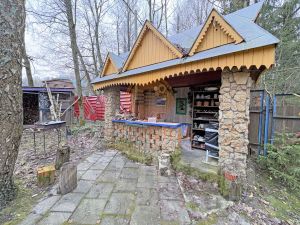 На территории также есть каменная баня со встроенной купелью для настоящего русского отдыха с паром и веником, а рядом — летняя кухня, где так приятно готовить и собираться всей семьёй в тёплые вечера. Всё продумано для комфортной жизни и отдыха: пространство уединённое, но не изолированное, с удобным подъездом и близостью к транспортной развязке.