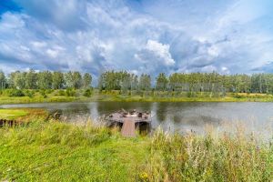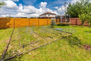 Участок 15 соток (земли сельхозназначения, для ведения садоводства) правильной прямоугольной формы, без уклона, выполнен ландшафтный дизайн, есть автополив, огорожен забором. На участке растут декоративные и плодовые растения: туи, ели, яблони, вишня, красная и черная смородина, малина. Залит фундамент для бани.