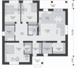 Дом одноэтажный + цокольный этаж. На 1 этаже расположено 5 комнат, гостиная , холл и кладовая. На цокольном этаже была размещена большая кухня, ванная комната и погреб.