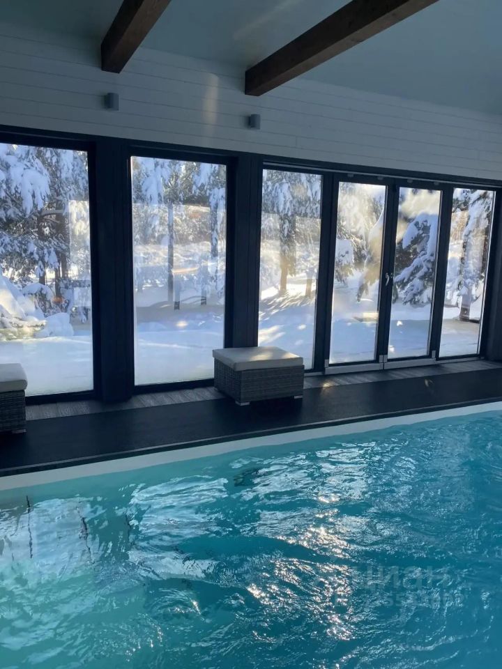 Гостевой корпус с баней и бассейном общей площадью 201 м² с панорамными окнами, кухней-гостиной и баней из натурального алтайского кедра и абаша, душевой и сан.узлом. Роскошный бассейн размером 9*3 метра, оснащённый современными технологиями: