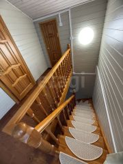 Продаётся уютный двухэтажный деревянный дом площадью 160 кв.м. Расположенный в Тульской обл., Заокском р-не, с/о Малаховский, СНТ "Скнига". Дом меблирован, на втором этаже расположены 2 просторные спальни (21 и 16 м.кв.) и кладовка 12 м.кв. А на первом этаже уютная гостиная площадью 30 кв.м, просторная кухня 18 кв.м, комфортабельная ванная комната 12 кв.м и застекленная терраса 21 кв.м. В доме установлена двухсторонняя печь-камин, что создает уют и тепло. Полы вымощены из прочного массива ясеня и сосны в спальнях, лиственницы в кухне и ванной, пролачены калерованным лаком тиккурила.