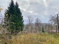 На участке посажены плодовые деревья (слива, яблони), кустарники, взрослые ели. Также имеется старый дом, который используется как сарай.