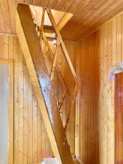 Участок 7 соток огорожен забором из профлиста. Место тихое, дороги не слышно. Имеется естественный склон, благодаря чему открывается красивый вид на горизонт. Есть парковка, ворота и калитка. Ухоженный, многолетний, здоровый сад приносит урожай. Зарегистрировано два строения: жилой дом 47м2 и кухня 28м2. При этом в обоих домах есть спальни на первом и втором этажах. Всего 4 изолированные комнаты, гостиная и большая кухня столовая. Везде установлены пластиковые окна. Снаружи строения обиты канадским сайдингом, внутри стены покрыты вагонкой. На участке также есть уличные душ и туалет, большая бытовка. Созданы все необходимые условия для отличного отдыха на природе, при этом недалеко от основной инфраструктуры поселка. Подъезд удобный, дороги чистят круглогодично, так как некоторые соседи проживают круглый год.