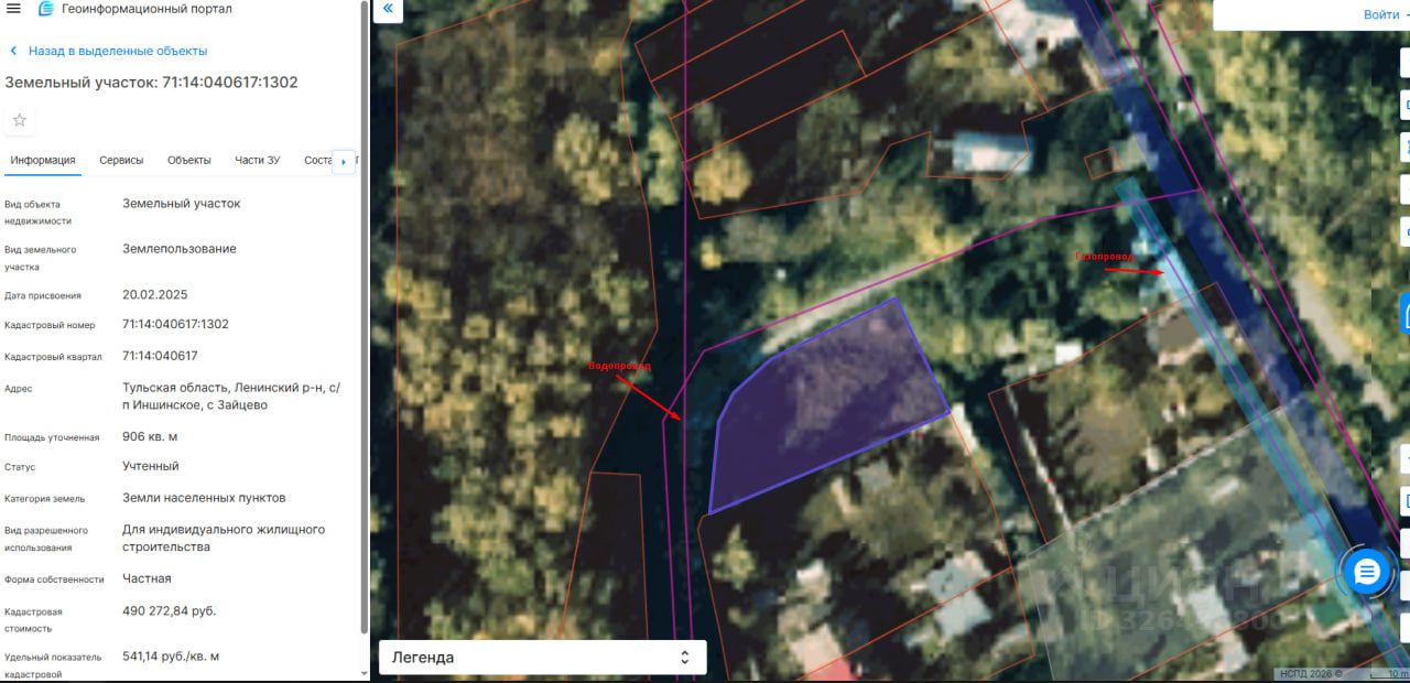 Кадастровый номер участка - 71:14:040617:1302. Участок в собственности, земли населенных пунктов, вид разрешенного использования - индивидуальное жилищное строительство.