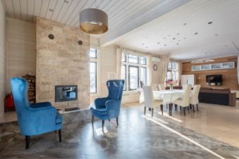 Просторная кухня-гостиная с уютным дровяным камином и системой тёплый пол в зоне отдыха.