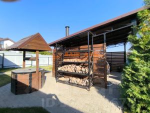 Участок в престижном коттеджном поселке Малевка огорожен высоким забором с откатными воротами. Перед домом — навес на две машины. Во дворе обустроена пикниковая зона под навесом с мангалом, большим столом и летней кухней. Есть собственный колодец с чистой водой.