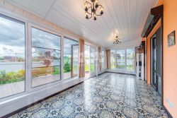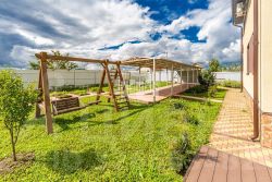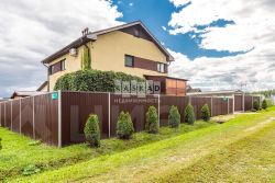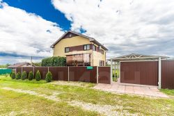 На участке установлены две теплицы, высокие грядки, качеля, хозяйственное помещение и парковка с навесом на три больших авто. Плодовые деревья, ежевика и цветы радуют и глаз, и вкусовые рецепторы. Забор вокруг участка металлический с электроприводом ворот.