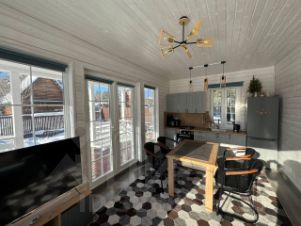Тульская область Заокский район снт Наткино 110 км от МКАД по Симферопольскому шоссе. Продаётся новый дом, построенный по каркасной технологии для круглогодичного проживания площадью 65 м 2 на участке 4 сотки в живописном снт Наткино в окружении соснового леса, в 15 минутах езды располагается дом - музей Поленова и протекает река Ока. Идеальное место для загородного отдыха от суеты, тихое живописное в дали от большого города. Утепление дома полы и крыша толщина 200 мм, стены толщина 150 мм, отделка стен имитация бруса, потолки отделаны вагонкой, высота потолков 2.8 метра, крыша металлочерепица. В дома два отдельные комнаты, кухня гостиная, санузел, прихожая и веранда. Дом построен на свайном фундаменте, (железобетонные сваи). Энергоэффективная конструкция, уютная планировка все коммуникации заведены в дом, вода колодец, канализация септик (выгребная яма), электричество так же заведено в дом, выделенная мощность 15 кВт, отопление электроконвекторы с термодатчиками, в ванной комнате установлена система тёплого пола. В дом заведён высокоскоростной интернет. Дом дома осуществляется подъезд по отсыпанной щебнем дороге, зимой дороги чистят постоянно, удобная парковка. Участок огорожен забором из сетки рабицы и металлопрофиля, сделаны ворота и калитка, дорожки на участке ,парковка под автомобиль и мангальная зона выложены тротуарной плиткой, участок ровный, ухоженный, посеян газон.. Установлено видеонаблюдение по периметру участка и дома. Дом полностью оборудован мебелью и сантехникой, все новое в рабочем состоянии. Оборудование включает в себя кухню современный гарнитур, холодильник, микроволновую печь, духовой шкаф и индукционную плиту. Для вашего комфорта установлен телевизор Android TV с доступом к Wi-Fi. Вся мебель и техника, которые вы видите на фотографиях, входят в стоимость. Все решения в доме продуманы до мелочей для комфортного проживания. С участка открывается живописный вид на сосновый лес, а в 200 метрах протекает река Скнига, место расположения СНТ на возвышенности. Вид разрешённого использования земельного участка садоводство, что позволяет прописаться в данном доме, дом зарегистрирован как жилой.Кадастровый номер участка 71:09:010605:122. Кадастровый номер дома 71:09:010605:335. Документы оформлены и готовы к сделке.