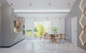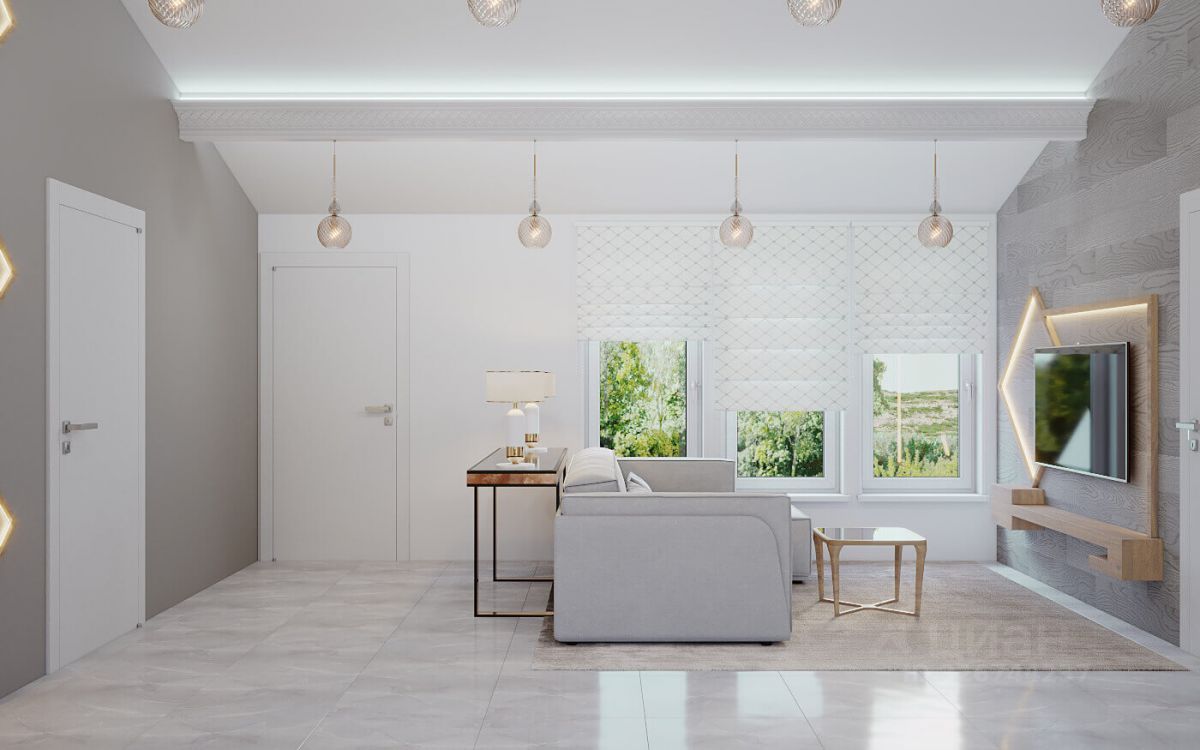 Окна в пол и увеличенная высота потолков создает ощущение простора и воздушности, в доме больше естественного света.