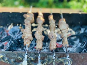 • кованая шашлычница под козырьком