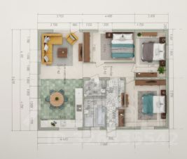 Одноэтажный дом внешние размеры 8 ,4* 11 м.