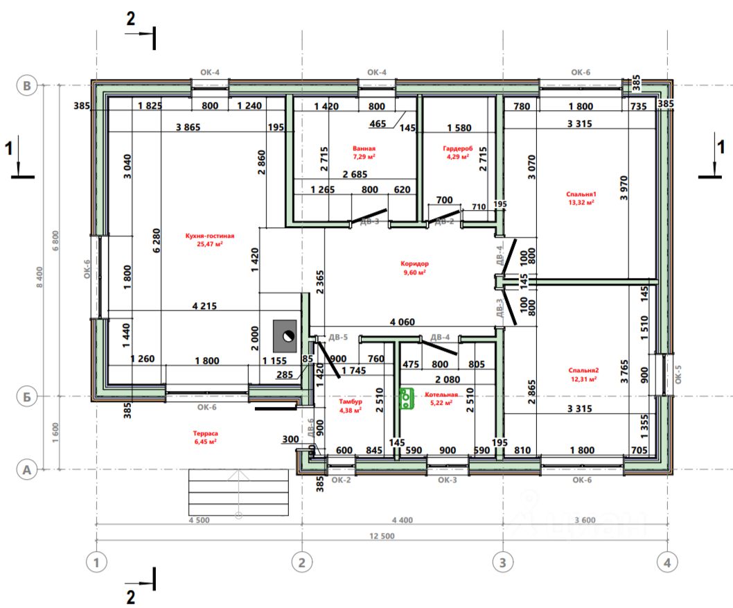 Одноэтажный дом внешние размеры 8 ,4* 12.5 м площадь 88,33 кв.м.