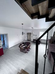 Дом, построенный в 2019 году, представляет собой двухэтажное здание площадью 140 квадратных метров. На первом этаже располагается уютная кухня-гостиная с действующим камином и удобной лежанкой, просторная кухня, спальня и современный санузел.