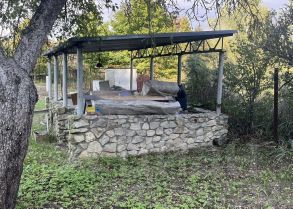 Участок крайний с прекрасным видом на лес, асфальтированная дорога к участку, прямо через дорогу лес, железные ворота с калиткой, забор проф лист и рабица, беседка, хозблок, туалет, электричество, вода сезонная. В пяти минутах ходьбы пруд и родник.