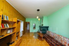 - на первом - гостиная с камином на дровах, вид из окон на озера, зелёные деревья, придомовый участок без соседей.