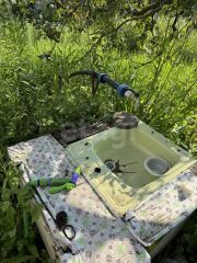 Участок прямоугольной формы, ровный и ухоженный, с фруктовыми насаждениями и оборудованным огородом. Также есть теплица и металический каркас для второй теплицы для будущих посадок. Вода заведена новыми трубами, с возможностью полива огорода.