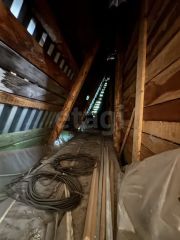 Сам дачный домик выполнен из газоблока, с застекленными окнами. На первом этаже расположены большая кухня-столовая и гостиная, а также небольшая крытая терраса. На втором этаже — просторная комната с огромной лоджией, окна которой выходят на участок. Также есть скрытое подсобное помещение для хранения вещей. Крыша дома недавно отремонтирована, дом сухой, теплый и светлый.