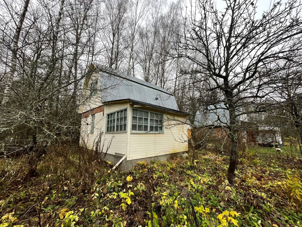 Дом подключен к электричеству и оборудован печкой-буржуйкой. Благодаря этому пригоден для круглогодичного проживания. На первом этаже две комнаты и веранда, на втором еще две комнаты.