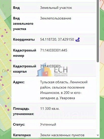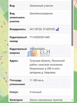 Номер в базе: 60424. В продаже земельный участок типа поселений (ижс), Ленинский район. Площадь участка 113 сот. г. Тула г. о. д. Уваровка. Коммуникации: газофикация, электроснабжение.
