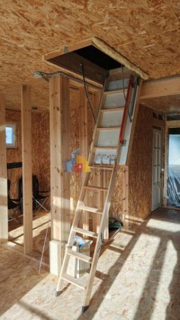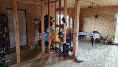 В доме на первом этаже тамбур, прихожая, кухня-гостиная 24кв.м, две спальни по 12 кв.м, бойлерная и санузел. На втором этаже коната свободного назначения, порядка 40 кв.м. которую можно разделить на 2 комнаты и сделать еще один санузел. Так же с кухни-гостиной выход на крытую террасу 8*2,5м. Куплен материал для фасада - сайдинг Грандлайн белый архитектурный планкен. Сделана пока одна сторона фасада.