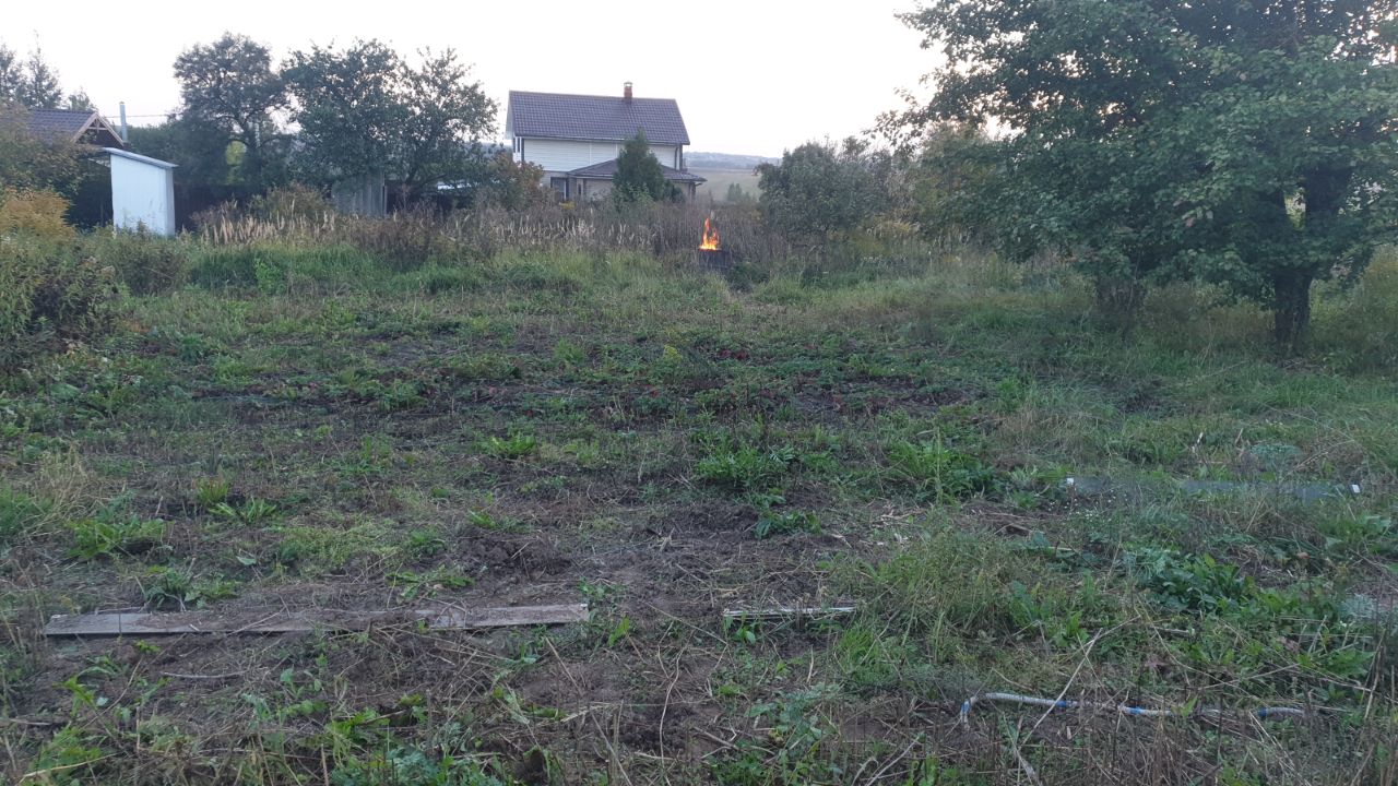 На участке имеется: водопровод по которому подается вода в определенное время; скважина; для воды имеется большая бочка (на фото); небольшой гараж под размер мотоцикла для инвентаря; плодовые деревья такие как вишня и черешня и много яблонь; большая плантация клубники; плодовые кустарники.