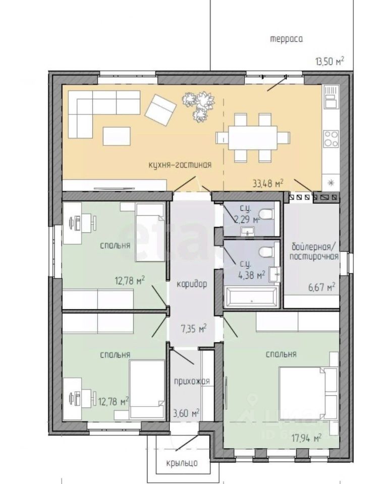 • 3 уютные спальни