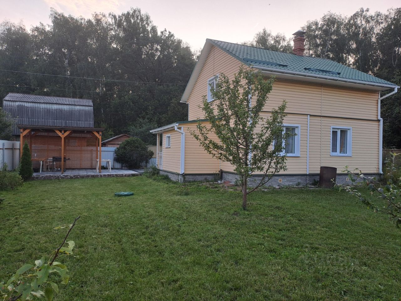Уютная двухэтажная дача на участке 6 соток у самой границы леса. Тихое, зелёное место, при этом удобный заезд с трассы и выезд. Участок ровный, ухоженный, засеян молодым газоном Изумруд (2 года). Посажены молодые плодовые деревья: яблони и груши, а также кустарники — жимолость, смородина, малина. Растут ель и туя. Сделана новая беседка с освещением, есть площадка под каркасный бассейн. Большой хозблок для хранения садового инвентаря. По периметру участка разведены трубы для удобного полива газона и растений. В доме есть всё необходимое для комфортного отдыха и проживания: большой санузел, душевая кабина, стиральная машина, бойлеры на кухне и в ванной. Установлены инверторные электрические обогреватели, также есть печь. Посёлок охраняется. Рядом крупные продуктовые магазины и удобная инфраструктура — поблизости Пятёрочка и Верный, а также железнодорожная станция Пахомово. Отличный вариант для отдыха на природе недалеко от города.