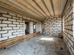 Дом построен из газосиликатных блоков, капитальный фундамент (свайно-ростверковый), плиты перекрытия, трехкамерные стеклопакеты, профиль 70 мм, крыша перекрыта металлочерепицей. На этаже большая кухня - гостиная, санузел, бойлерная.