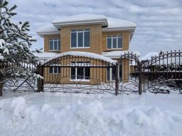 сам дом расположен на участке 10 соток, по периметру огорожен забором из профлиста, фасадная часть из кованного забора с откатными воротами и калиткой