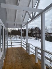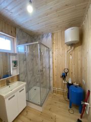 Продается жилой дом 65м2 для круглогодичного проживания на участке 13 соток в поселке Романовские просторы Заокского района. Дом 10х8, покрашен снаружи, обработан, утеплен 150мм по стенам, полу, кровле. Стоит на бетонных сваях. Оборудована водосточная система. Отапливается электрическими конвекторами. Электричество 15 кВт заведено в дом, разведено по комнатам. Вода подается из своего колодца (10 колец), есть накопительный бак. Септик сделан (выгребная яма). Установлена душевая кабина, унитаз, раковина. Все функционирует, как в квартире. В доме современная и удобная планировка: кухня-гостиная 25м2, две спальни по 11м2, сан узел 5,4м2, большая терраса 14м2. Участок с небольшим склоном, квадратной формы, огорожен, имеет красивый вид на речку. Место тихое, дорога тупиковая. До станции Курского направления "Романовские дачи" 3,5км. От МКАДа 95 км (полтора часа пути и Вы на месте). Основная инфраструктура в Заокске, в 15 мин езды на машине: школы, детские сады, торговые центры, кинотеатр, больница, травмпункт, мфц, магазины (верный, пятерочка, фикспрайс и тд.). Вокруг, кроме уникальной природы, есть заповедники и музеи: Приокско-террасный заповедник, музеи Поленова, Болотова, Руднева, несколько пляжей, склоны зимнего отдыха. Все документы в порядке, готовы к сделке. Просмотры возможны с воскресенья по пятницу с 9:00 до 20:00 по предварительной договоренности. Звоните, пожалуйста, по всем вопросам с воскресенья по пятницу с 10:00 до 21:00. Суббота выходной. Кадастровый номер участка: 71:09:010301:4735