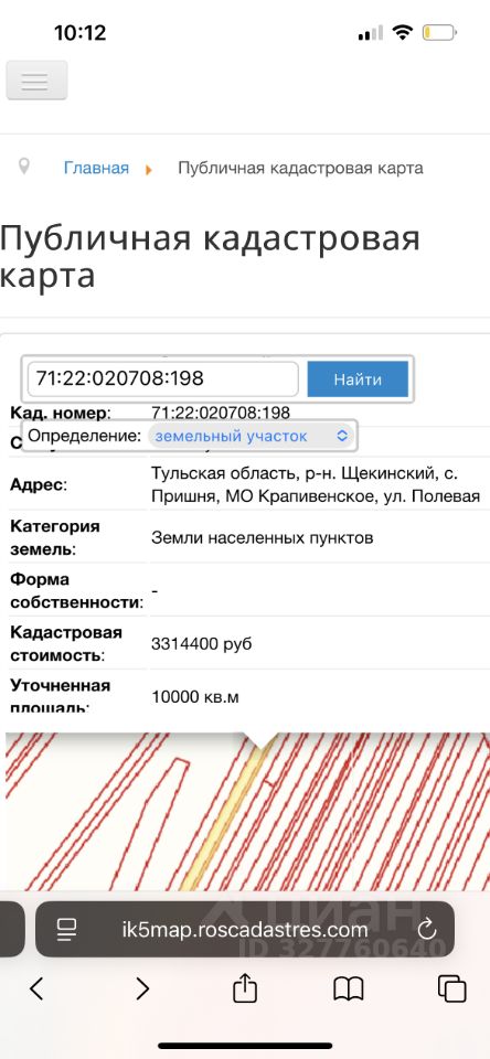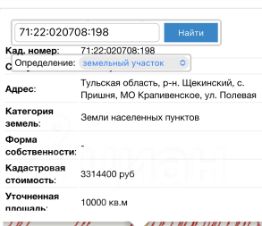 Продажа участка 1 га в с.Пришня Щекинского района Тульской области