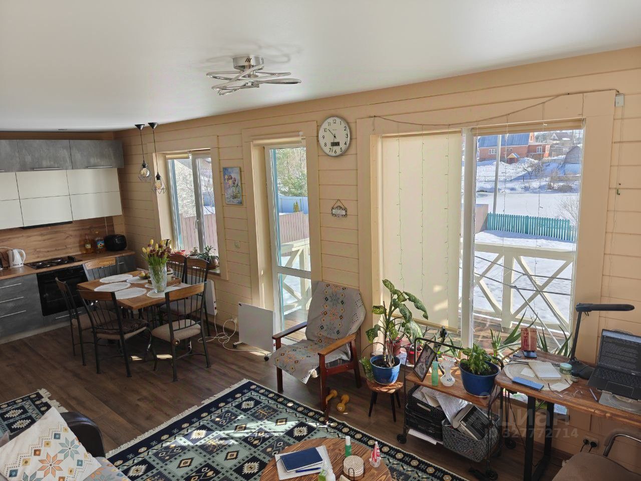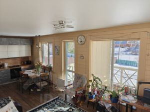 Дом в эксплуатации 5 лет, обжитой, современный, с панорамными окнами и с видом на пруд. Высота потолков 2,7 м.