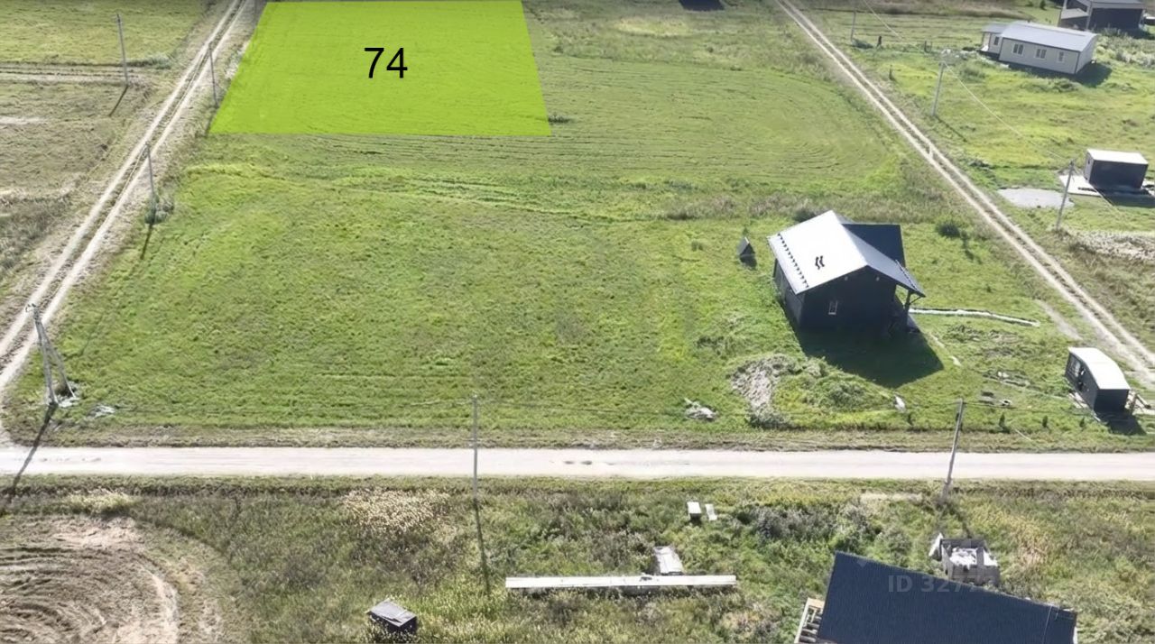 Участок 74 площадью 9,96 сотки расположен в поселке Vanberry Village. Это один из более просторных участков — почти 10 соток, что дает больше возможностей для размещения дома, террасы, бани, сада и зоны отдыха.