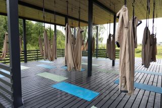 Продаётся жилое здание с уютной чайной и большим йога-залом, общая площадь здания 550 кв метров, зал порядка 300 кв м., а также с внешней квадратной крытой террасой, обустроенной под занятия йогой в гамаках. В здании есть 3 санузла и 2 душевые. Теплый водогрейный пол во всех помещениях (котлы Thermex).