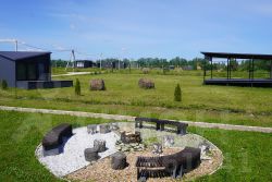 Здание продается в комплексе со вспомогательными постройками на участках: небольшой кемпинговый дом 15 кв м с теплым полом, но без санузла, а также крытой сценой для развлекательных мероприятий.