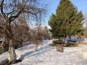 Зона отдыха: На участке расположена уютная беседка со столом и скамьями под навесом — идеальное место для семейных обедов на свежем воздухе.